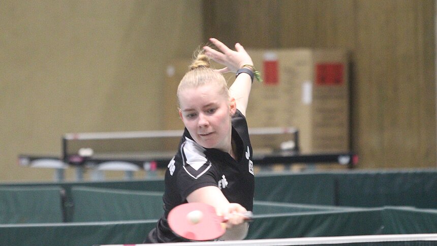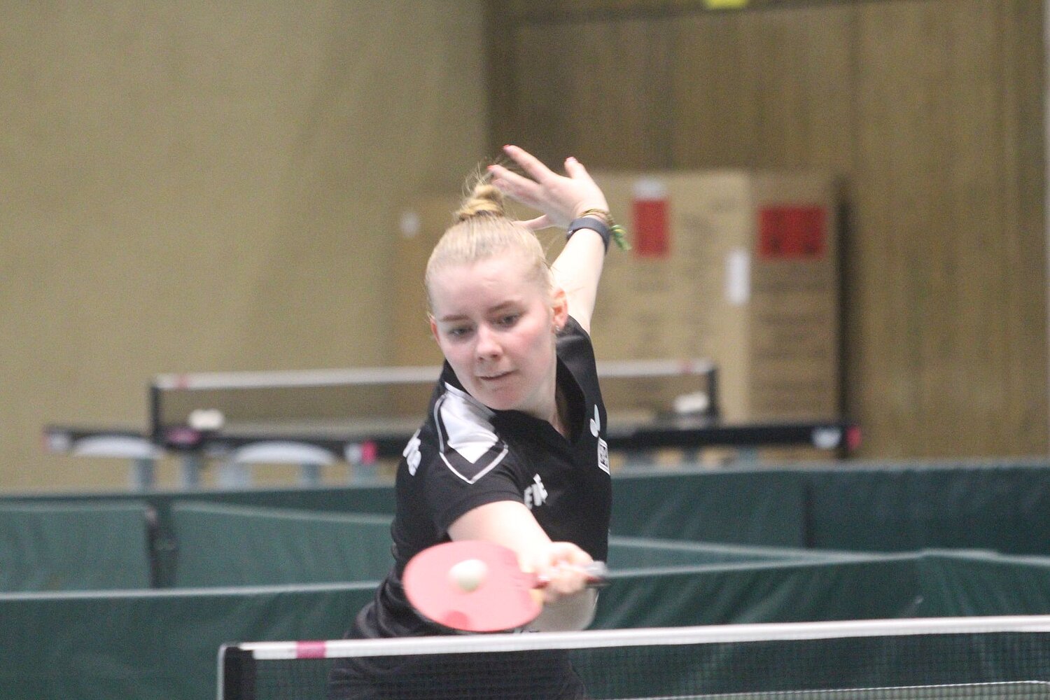 Mit dem 0:4-Zwischenstand ging es in die Pause. Marija Mikalauskyte (im Bild zu sehen) versprühte anschließend einen Hoffnungsschimmer. Gegen die nah am Tisch stehende Noppenspielerin des MTV hatte Gästeakteurin Milena Burandt keine Idee, wie sie ins Spiel kommen sollte und der Tostedt-Neuzugang siegte glatt mit 11:4, 11:6, 11:0.