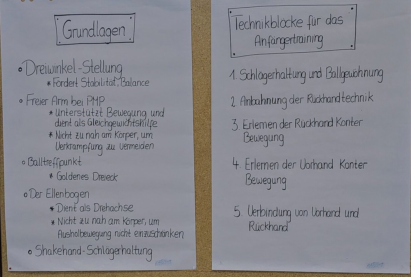 Fortbildung Tischtennis gegen Parkinson - Flipcharts