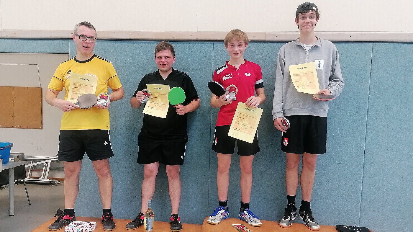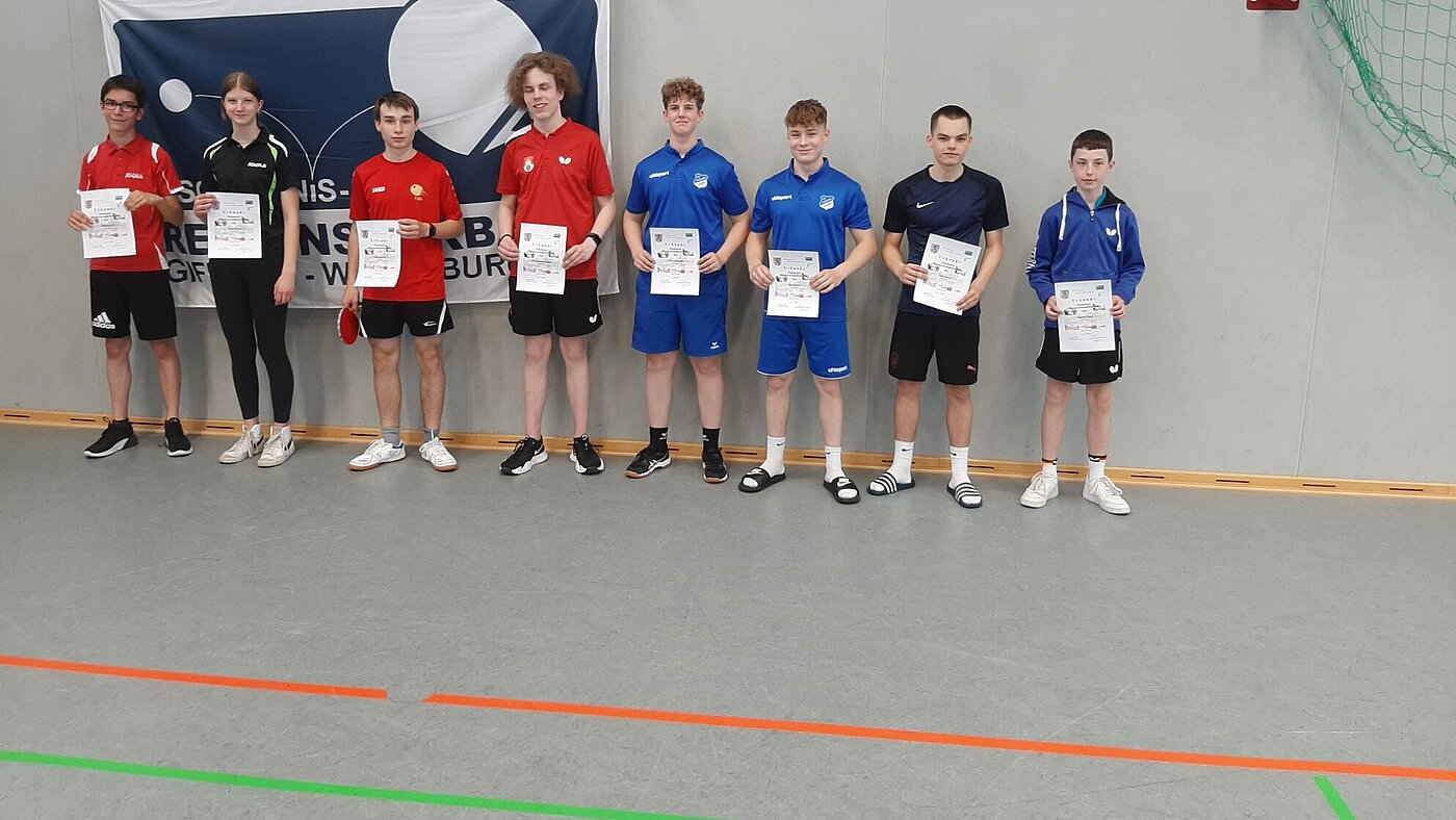 1. Oleksandr Kocherha (TSV Germania Helmstedt; 7:0, 21:0), 2. Maxim Schitek (TTC Schwarz-Rot Gifhorn; 6:1, 18:4), 3. Pascal Brzoska (MTV Hattorf; 5:2, 15:8), 4. Luca Roß (SV Leiferde; 4:3; 15:9), 5. David Hofsetz (TTC Grassel; 3:4; 9:12), 6. Lian Klingsing – TTC Grassel (2:5; 6:15)