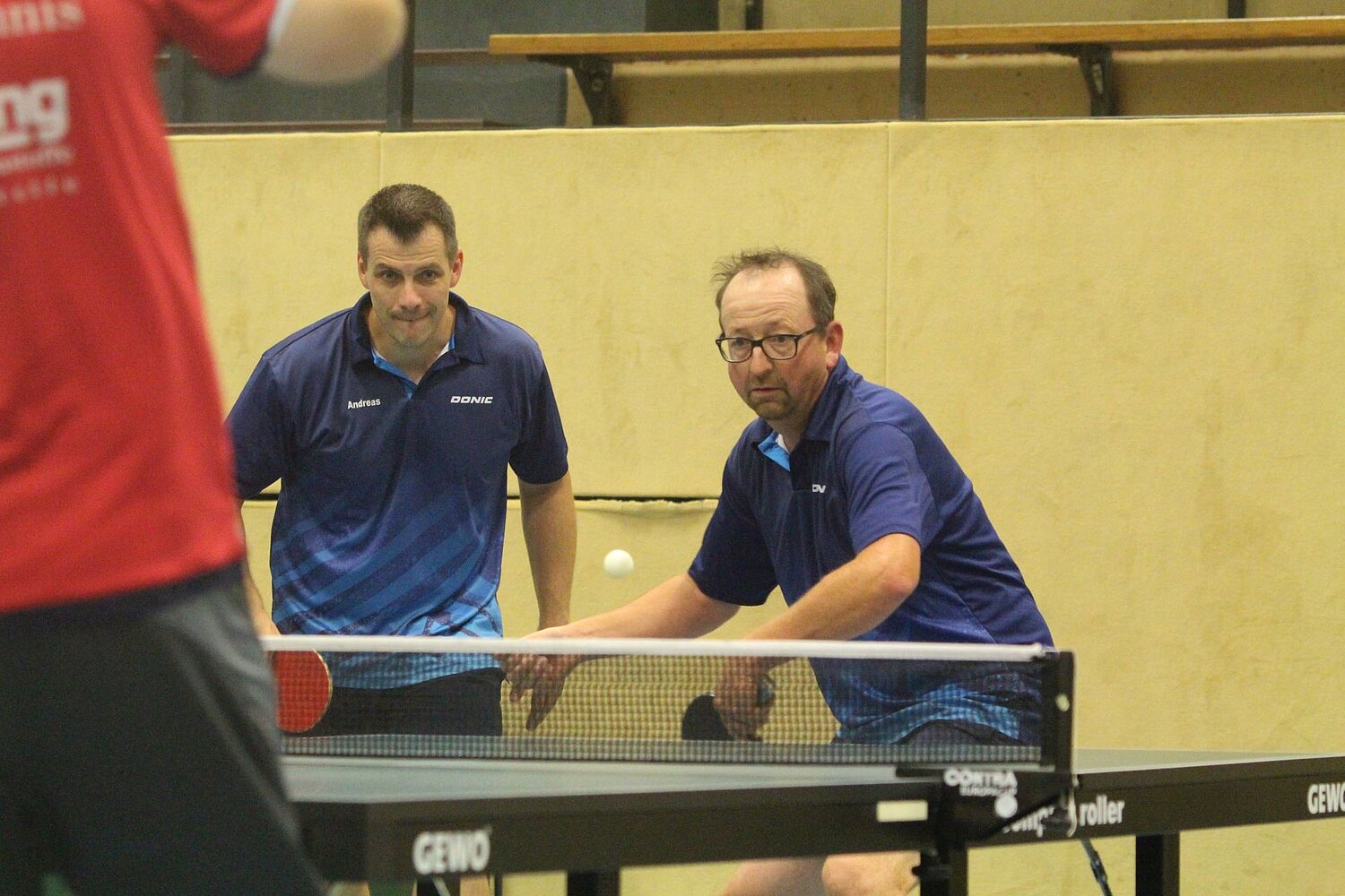 Die Gäste starteten besser: Scharmbeck-Rückkehrer Ansgar Bender und Marc Petersen bezwangen Fliegenbergs Nagel/Schuh (im Bild zu sehen) im Vergleich beider Top-Duos nach drei Durchgängen. Am Nebentisch blieb es bis zum letzten Durchgang eng. Dietze/Stegemann glichen den 1:2-Satzrückstand zwar anschließend aus, doch Freytag/Harms blieben knappe 11:9-Sieger im Entscheidungssatz und so lagen die Gäste mit 2:0 vorn. Ein etwas überraschender Zwischenstand, denn die Scharmbecker gingen mit einem „Kaltstart“ ins erste Pflichtspiel, ohne eine Trainingseinheit zuvor.