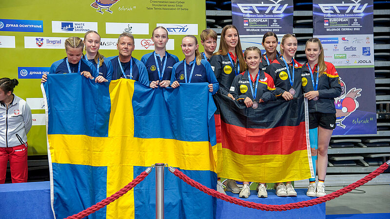 Bei den 64. Jugendeuropameisterschaften in Belgrad haben im Team-Wettbewerb beide Mädchen-Teams des DTTB die Bronzemedaille gewonnen!