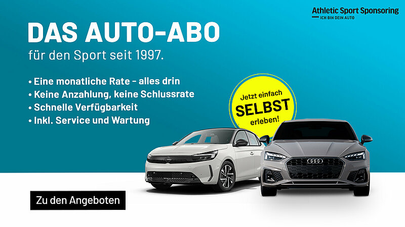 Erfahre alles über das einzigartige Konzept unseres Partners Athletic Sport Sponsoring! Bereits seit 1997 unterwegs im Auto-Abo – exklusiv für den Sport.