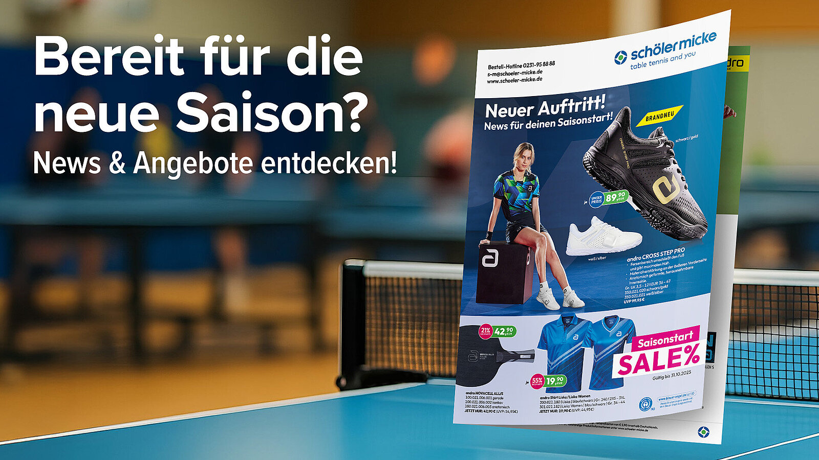 ANZEIGE: Bei Schöler Micke gibt es jetzt Neuheiten und Top-Angebote für den perfekten Saisonstart, von Schuhen über Bekleidung bis hin zu den Material-Highlights bei Belägen, Hölzern und Komplettschlägern.