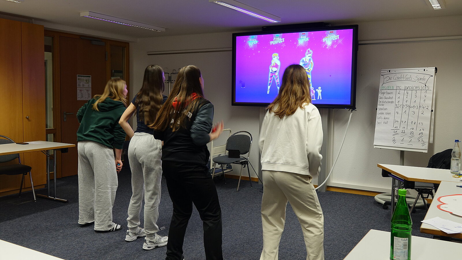 Abgerundet wurde der Samstag mit einem weiteren Programmpunkt: „Die Coach4Girls-Spiele“. In Vierergruppen mussten die Teilnehmerinnen Gegenstände abschätzen, Flieger bauen und Geschicklichkeitsübungen absolvieren. Mit kreativen Gruppennamen, vollem Einsatz und viel Lachen gab es dann eine kleine Siegerehrung, bei der die Platzierungen jedoch nur Nebensache waren. Im Vordergrund standen die Gemeinschaft und das gemeinsame Beisammensein am Abend. Abgerundet wurde der Tag mit einer kleinen Sporteinheit mit dem Nintendo Switch-Spiel „Just Dance“.