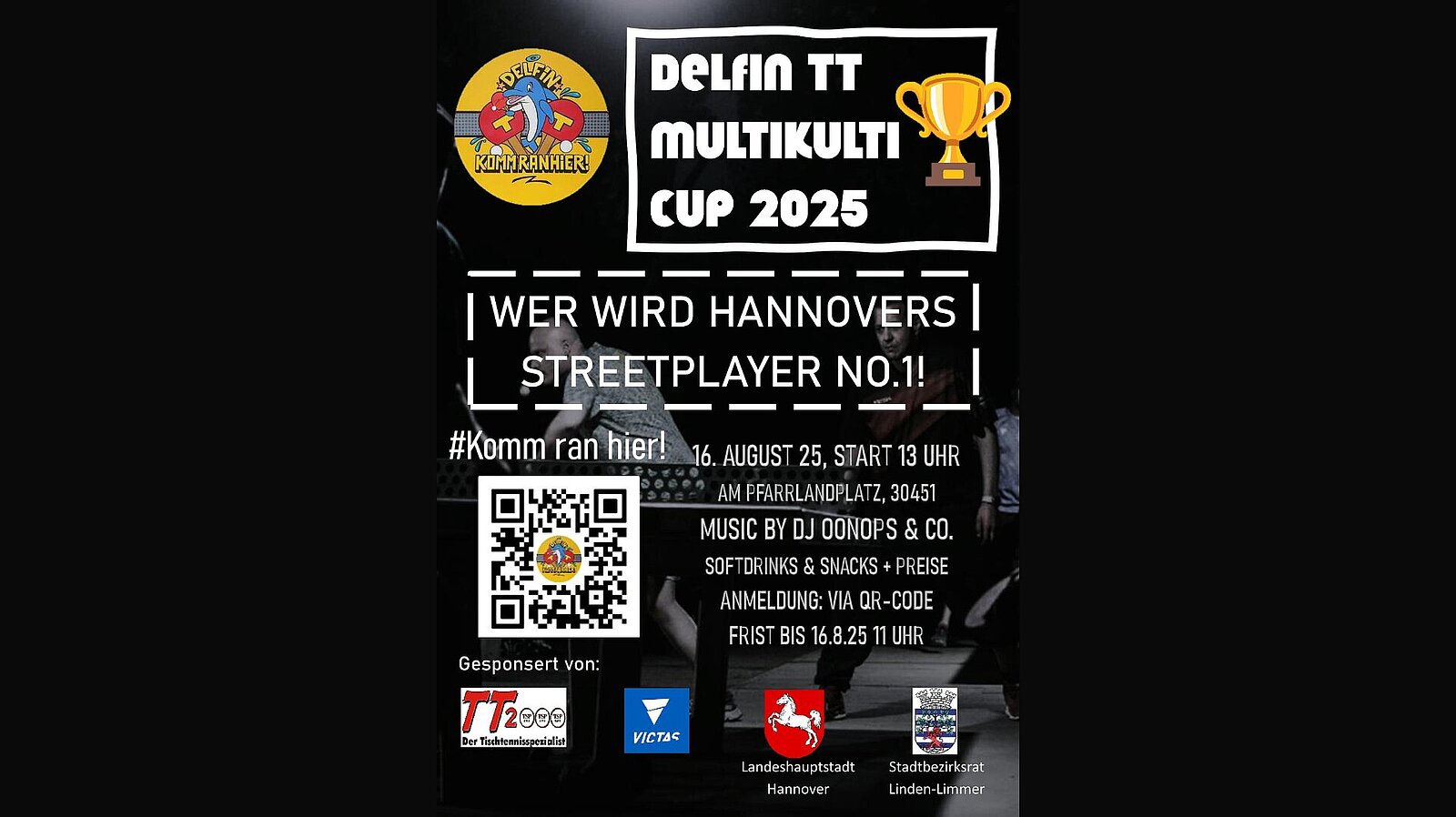 Die Halle ist noch geschlossen oder es ist einfach zu warm, um indoor Sport zu treiben? Dann ist der Delfin TT Cup in Hannover am kommenden Samstag, 16. August 2025, vielleicht das Richtige. Am Pfarrlandplatz wird der beste Outdoor-Tischtennisspieler gesucht - begleitet von Musik, Snacks, Getränken und natürlich einer Menge Spaß. Der Start kostet nichts, die Anmeldung ist online oder vor Ort noch bis Samstag, 11 Uhr, möglich.