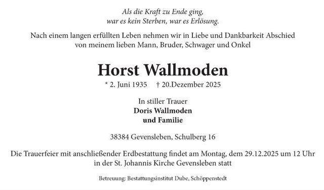 Die Tischtennisfamilie trauert um Horst Wallmoden