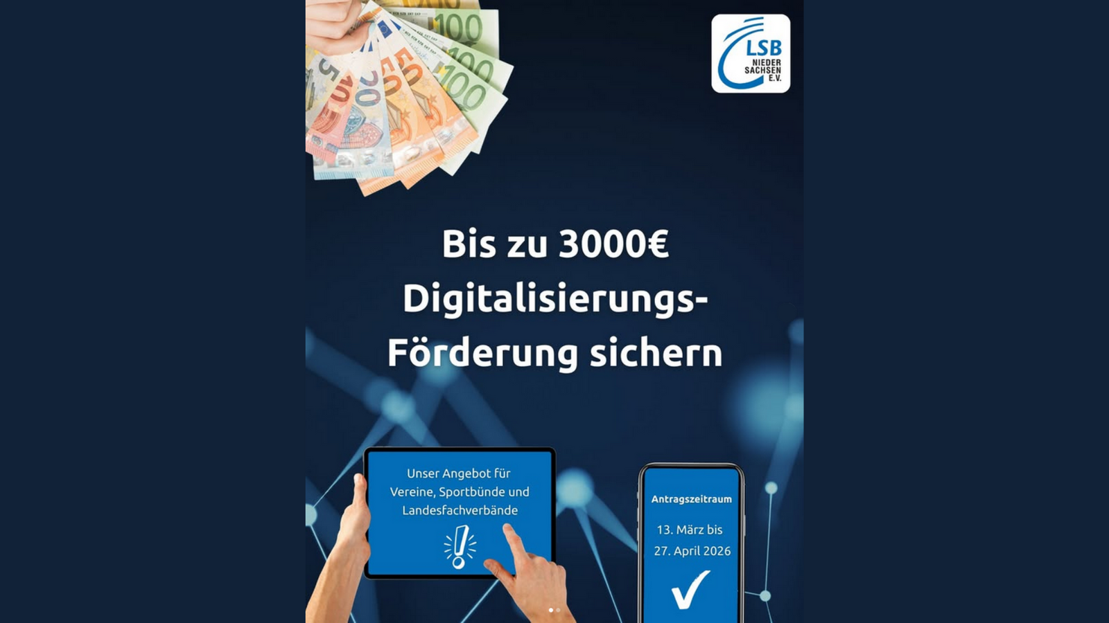 Die digitale Welt macht auch vor der Sporthalle nicht halt. Um die niedersächsischen Vereine zukunftsfähig aufzustellen, hat der LandesSportBund (LSB) Niedersachsen die Schwerpunktförderung „Digitalisierung im Sportverein“ gestartet. Ab sofort und noch bis zum 27. April 2026 können Anträge für Projekte eingereicht werden, die das Ehrenamt entlasten oder innovative Sportangebote schaffen.
