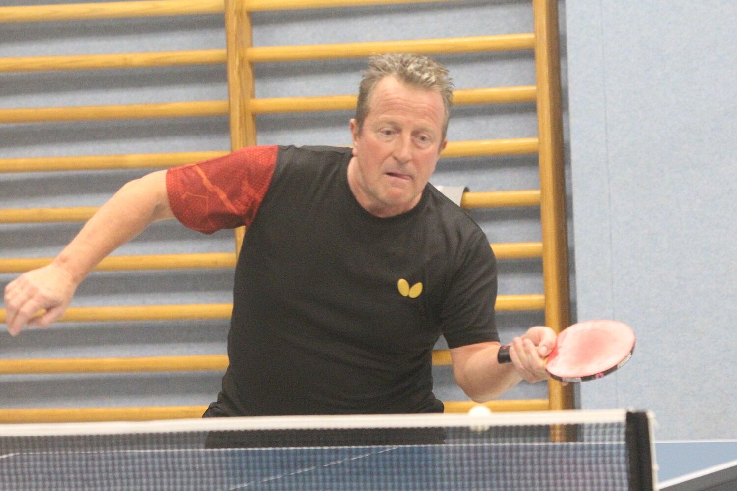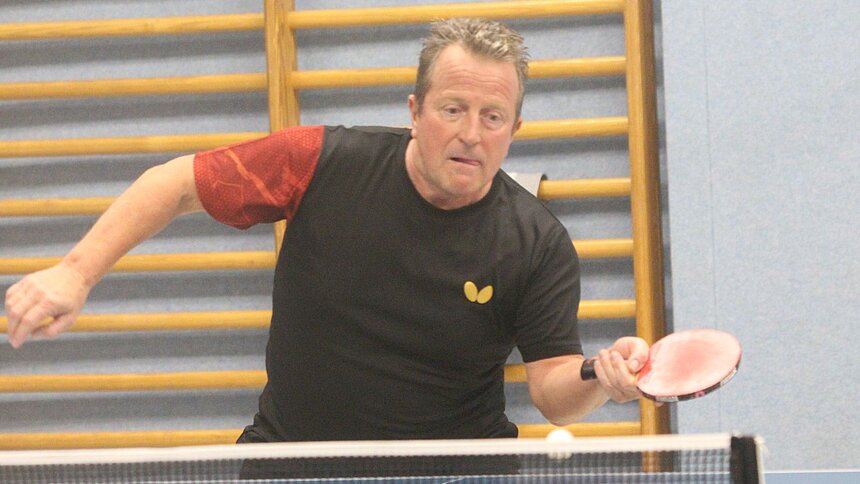 Einen ungewöhnlichen Empfang bereitete der TSV Over-Bullenhausen dem TSV Hittfeld 1: „Seit rund 35 Jahren war wohl kein so hochkarätiges Team in unserer Halle“, war sich Benjamin Kiel sicher. Der Start des Achtelfinals versprach Überraschungspotential. Der TSV konnte als Bezirksklassenteam auf eine 4:0-Satzvorgabe gegen den Landesligisten bauen, die die Pokalordnung dafür vorsah. Die Hausherren legten, im Vergleich der Top-Doppels, vor. Kiel/Schwarz bezwangen Holtfoth/Pubanz im vierten Satz mit 11:7. Am Nebentisch zogen die Teamkollegen fast nach. Bei 2:1-Satzführung der Overaner Patzke/Spitzer lagen sie im vierten Durchgang mit 10:7 vorn. Doch Raeder/Fenz wehrten alle Matchbälle ab und siegten im Entscheidungssatz mit 11:6: „Wenn wir dieses Doppel auch verloren hätten, wäre es ein ganz anderes Pokalspiel geworden“, stellte Andreas Raeder bei Spielende fest. Dann übernahm der Favorit das Kommando. Andreas Raeder´s knapper 12:10, 11:9, 12:10 über Benjamin Kiel, folgte der Vier-Satz-Sieg von Marvin Lukas Holtfoth über Tom Patzke. Hittfelds-Top-Oldie, Peter Pubanz (im Bild zu sehen), musste sich anschließend strecken. Nach 1:1 Sätzen lag er gegen Erik Spitzer im dritten mit 2:9 im Hintertreffen. Doch dann gewann er alle folgenden neun Ballwechsel und das Einzel im vierten Durchgang – Qualität setzt sich am Ende eben doch durch. Over punktete nur noch einmal: Hittfelds Bester, Marvin Lukas Holtfoth, schoss die Vorhandbälle gnadenlos diagonal auf den Tisch, die Benjamin Kiel zur Überraschung des Seevetalers konterte. Nach mehreren „das gibt es doch gar nicht“ und nach vier Sätzen gewann Kiel den Vergleich. Andreas Raeder setzte den Schlusspunkt zum 6:2-Hittfeld-Erfolg mit einem 11:6, 11:8, 11:9 über Tom Patzke.