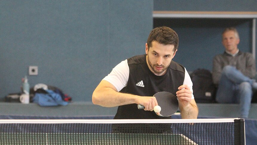 Im Bild zu sehen ist der amtierende Kreismeister der Herren im Einzel, Achmed Dugaew (MTV Brackel).