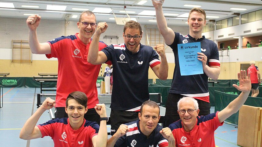 Stelle. Die Tischtennis-Kreispokal-Endspiele, zwei Jahre lang pandemiebedingt nicht ausgetragen, starteten kürzlich in der Schulsporthalle in Stelle. Fünf Finals an einem Tag, waren für alle teilnehmende Teams zum Saisonende nochmal ein besonderes Highlight nach einer kuriosen Spielzeit 2021/2022. Bei den Herren-Klassen A und D gab es zwei Endspiele, die es so wohl in der Historie des Tischtennis Kreisverbandes (TTKV) Harburg Land noch nie gab. Denn zweimal hieß es TV Vahrendorf gegen TuS Jahn Hollenstedt.