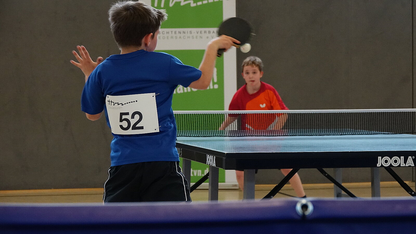 Über den ganzen Tag verteilt wurde den mitgereisten Eltern, Geschwistern und Betreuern spannende Spiele geboten. Bei den Mädchen 0-8 Jahre erspielte sich Antonia Kühling (SV Grün-Weiß Mühlen) den ersten Platz. In der älteren Altersklasse (9-10 Jahre) gewann Karolina Hud (MTV Engelbostel-Schulenburg). Bei den Jungen 0-8 sicherte sich Kirill Manalaki (TSG Dissen) den Sieg in seiner Altersklasse. Sieger der Jungen 9-10 Jahre wurde Benno Dettmer (SV Arminia Hannover) in der heimischen Halle. Es war eine tolle Atmosphäre, da die Eltern und Gäste durch den U-Förmigen Tischaufbau mitten im Geschehen waren.
