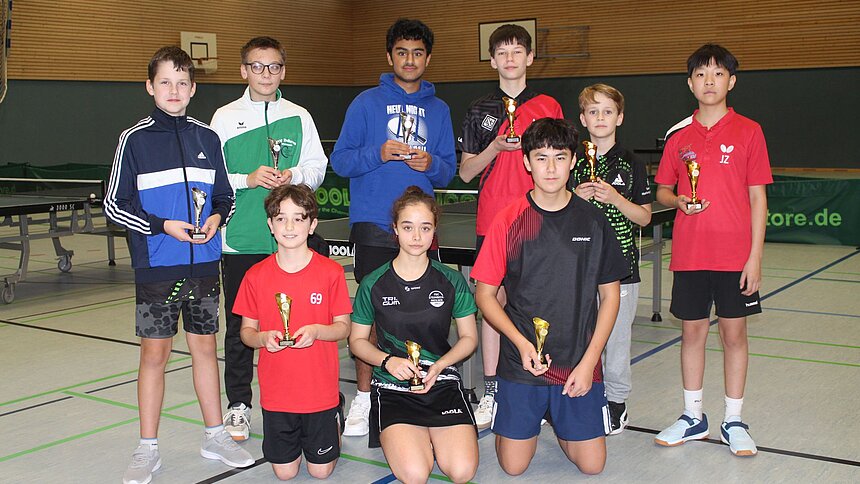 Am 13. Dezember 2025 startete in der Rosengartenhalle in Klecken so das 1. Jugend-Weihnachtsturnier. 51 Teilnehmer dieses sogenannten Dreier-Team-Turniers landeten entsprechend ihrer QTTR-Werte in drei verschiede Lostöpfe verteilt. Drei unterschiedlich starke Spieler bildeten ein Team für den anschließenden Wettkampf, bei dem der Spaß im Vordergrund stand. Der Wettbewerb wurde nach den vorher festgelegten fünf Runden im Modus des Schweizer Systems durchgeführt. Nach einer frei gelosten Auftaktrunde trafen dann jeweils Sieger der 1. Runde aufeinander. Im gleichen Zug spielten Erstrundenverlierer gegen ein Team, das zum Auftakt ebenfalls unterlag. Im Rahmen dieser Veranstaltung, die viele positive Stimmen fand und im kommenden Jahr in etwas geendeter Form voraussichtlich eine Fortführung erlebt, wurde zudem eine Tombola durchgeführt und jeder Teilnehmer trat die Heimreise mit einem Weihnachtsmann an. Lorik Maliqi (SC Klecken), Romy Wöbel (TSC Steinbeck-Meilsen) und Alexander Böhring vom TuS Fleestedt (auf dem Bild vorne kniend von links nach rechts zu sehen) hießen die Sieger dieses Turniers, bei dem zum Abschluss die Hinrundenmeister der Kreis-Tischtennis-Jugend geehrt wurden.