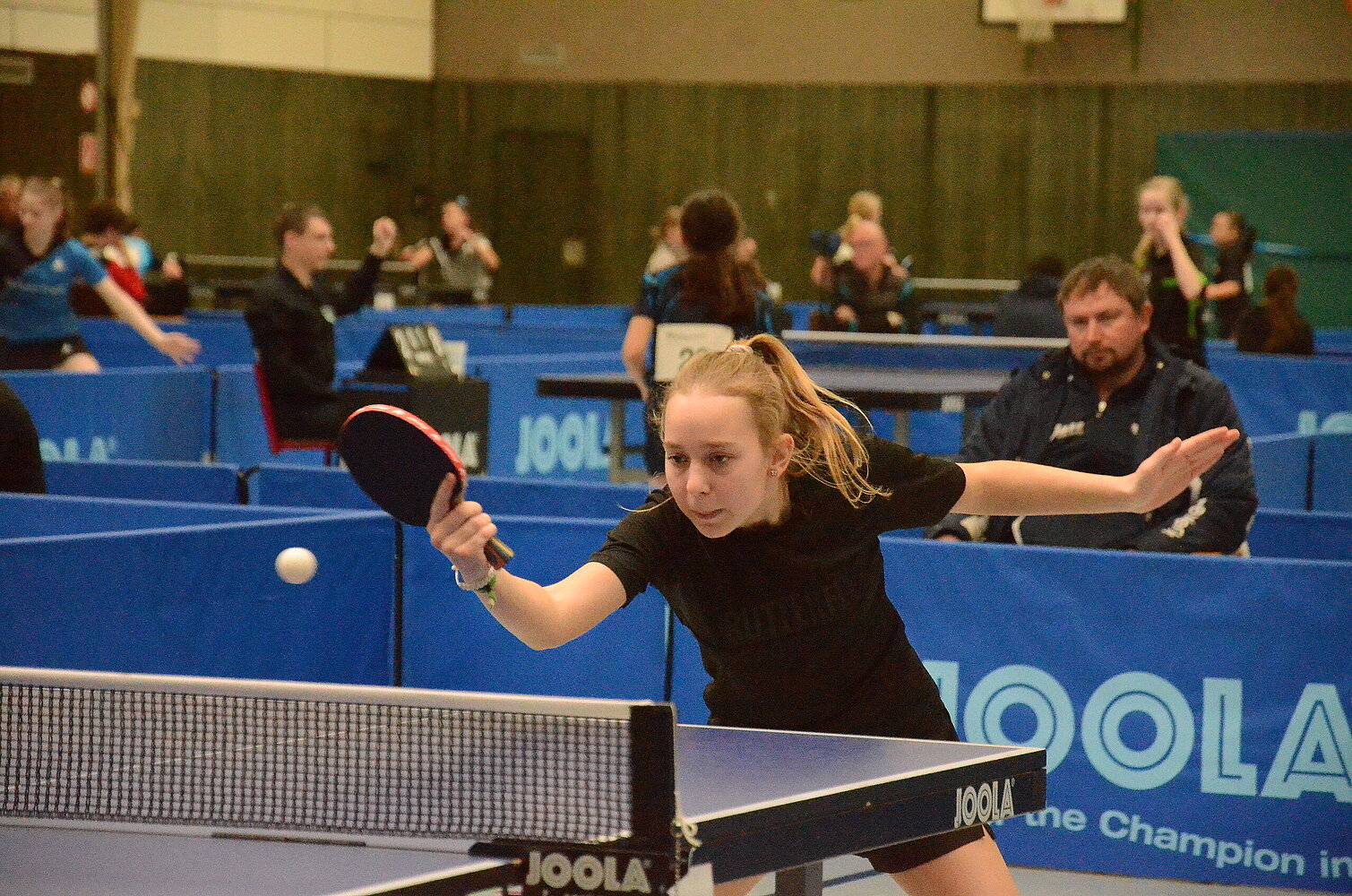 Mit Fee Banse, Sofie Boguslavska, Elisa Meyer, Laura Milos und Lisanne Tschimpke stellte Hannover 96 die meisten Spielerinnen in der Altersklasse Mädchen 19. Alle Fünf Mädchen spielten sich erfolgreich durch die Gruppen und freuten sich übers Weiterkommen ins Ko-Feld. Elisa Meyer und Laura Milos gelang sogar der Gruppensieg, sodass sie in der ersten Runde des Hauptfeldes die Spiele der Mannschaftskolleginnen oder auch ihrer Kontrahentinnen von der Tribüne aus zuschauen konnten. Gleiches galt für Faustyna Stefanska (MTV Engelbostel-Schulenburg) und Maja Kloke (ASC Göttingen), die ebenfalls als Gruppensiegerinnen feststanden. Als Zweitplatzierte in der Gruppe musste die amtierende Landesranglistensiegerin Sofie Boguslavska die komplette Ko-Runde mitspielen. Dort entwickelte sie sich dann zur Spielerin, die nach und nach ihre Mitfavoritinnen aus dem Turnier warf. Im Viertelfinale war es Maja Kloke, die Boguslavska zwar bis in den fünften und entscheidenden Satz zwang, ihr dann aber doch zum Sieg gratulieren musste. Im Halbfinale gelang ihr dann mit einem deutlichen 3:0 Sieg über Faustyna Stefanska eine echte Überraschung. So kam es zum vereinsinternen Finale zwischen Sofie Boguslavska und Laura Milos (beide Hannover 96), die zuvor mit Fee Banse und Elisa Meyer ihre beiden Mannschaftskollegen besiegt hatte. Auch wenn Milos mit 1:2 Sätzen in Führung ging, blieb Boguslavska im Spiel und glich zum 2:2 Satzstand aus. Der fünfte Satz war hart um gekämpft, beide schenkten sich keine Punkte, sodass das Ende offen blieb. Mit 11:8 war es dann Boguslavska die sich zur Landesmeisterin küren konnte.
