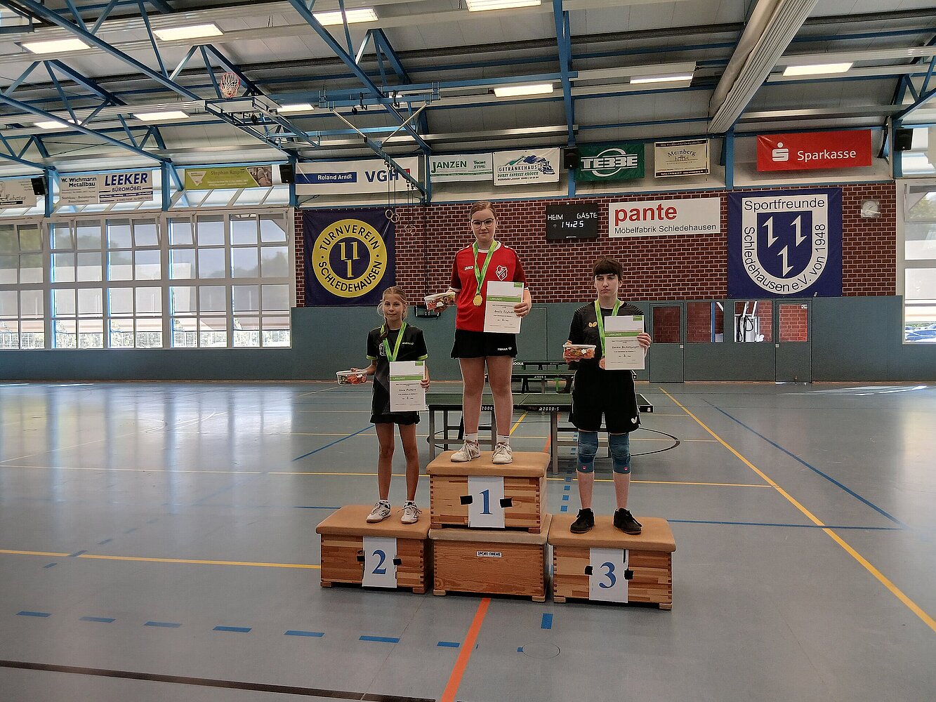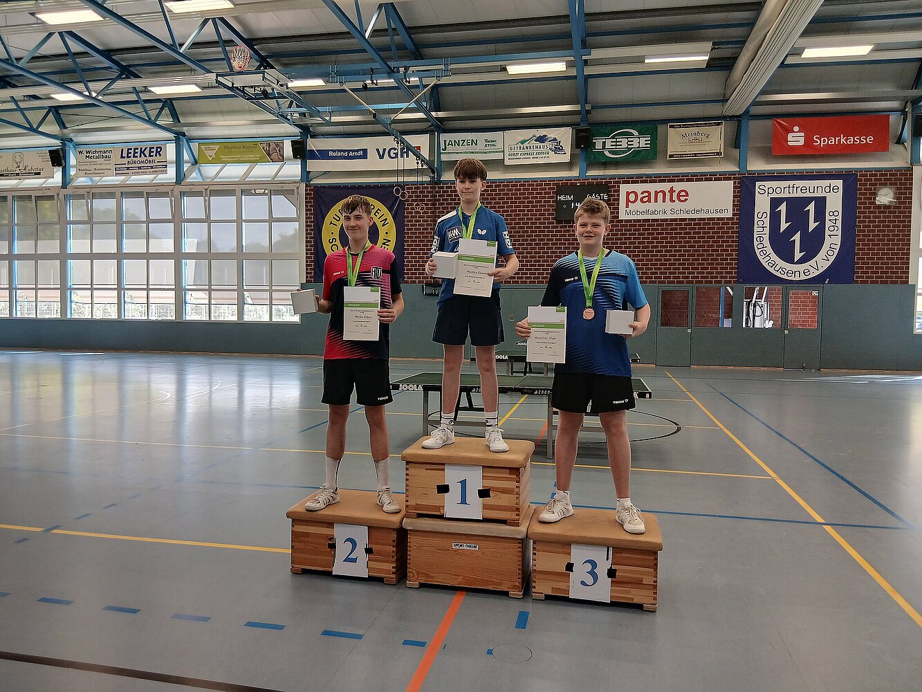 Da bewies sich also wieder, dass ein solches Ranglistenturnier mit elf Spielen kein Sprint ist, sondern eher ein Marathon. Dass aber unsere TTVN-Talente fit genug für zwei solche Turniere binnen zwei Wochen sind, zeigten manche jüngere Spielerinnen und Spieler, die nun auch bei den älteren gut mitspielten: Wie Benno Dettmer, der nach drittem Platz in der Jugend 15 nun Vierter in der Jugend 19 Konkurrenz wurde. Oder der Vierte und Sechste in der Jugend 13, Constantin Däsler und Jamie Stang (TSG Hatten-Sandkrug), die vor zwei Wochen noch Erster und Zweiter in der Jugend 11 Konkurrenz wurden.