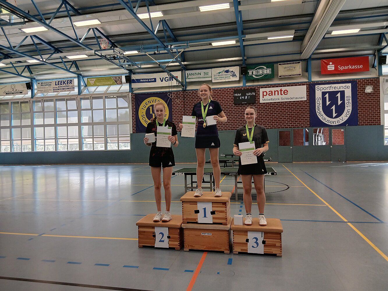 Umso knapper wurde es dafür bei den Mädchen 13. Amelie Telgheder (SuS Buer) setzte sich mit 6:1 Siegen in der Endrunde vor gleich drei Spielerinnen mit 5:2 Bilanz durch. Clara Pinheiro (TuS Sulingen) wurde wegen des besseren Satzverhältnisses Zweite vor Carina Beckersjürgen (TuS Hilter) und Adelina Schmidke (TTC Drochtersen). Telgheder verlor in der Endrunde keine Partie mehr, während Beckersjürgen, die in der Vorrunde als einzige ungeschlagen geblieben war, durch zwei Niederlagen doch noch an Boden verlor.