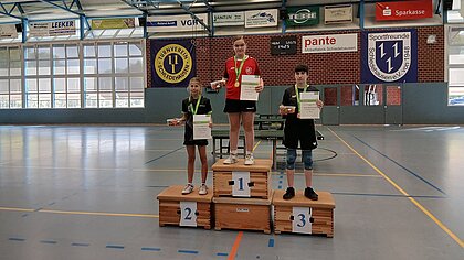 Den Sieg konnten sich dann aber doch in allen Konkurrenzen die Älteren sichern: Bei den Mädchen 19 gewann Lisanne Tschimpke (TTK Großburgwedel), bei den Mädchen 13 Amelie Telgheder (SuS Buer), in der Jugend 19 Konkurrenz Matthis Kassens (TuS Celle) und Jugend 13 Konkurrenz Enno Schypke (SV Grün-Weiß Mühlen). Diese vier können sich somit schon mal auf das nächste anstrengende Ranglistenturnier freuen: Das DTTB-Top32 der Jugend 13 am 18./19. Oktober im TTBW und das Top 48 der Jugend 19 am 8./9. November im niedersächsischen Dissen.