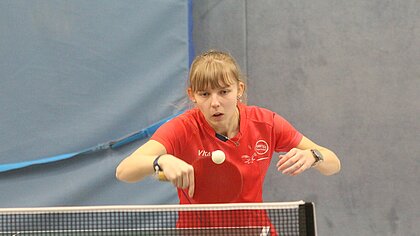 Als sich die A-Herren mit dem Viertelfinale langsam ihrem Ziel näherten, stand bei den Damen dieser Spielklasse schon das Endspiel an: Nach dem Verlust des ersten Satzes gegen Zoey Luna Polke (TG Freden, Bezirk Hannover) erhöhte Vorjahressiegerin Lara Hullmann (TuS Ekern) die Schlagzahl. Bei ihrer 2:1-Satzführung und 3:0 im dritten Durchgang, unterbrach ihre Kontrahentin mit Time Out. Doch am Ende hieß es 7:11, 11:9, 11:9, 11:6 und die Titelverteidigung für die 19jährige aus dem Bezirk Weser-Ems war gelungen. Ein weiteres, erst 18jähriges Nachwuchs-Ass katapultierte sich durch den Herren-B-Wettbewerb: Ben Bultmanns Ruderbewegungen am Tisch erinnerten ein wenig an die, die einst Peter-Michael Kolbe auf dem Wasser ganz weit nach vorn brachten. Ohne Spielverlust erreichte der Hundsmühlener, Vorjahressieger der Herren C, bei nur drei verlorenen Sätzen das Finale. Gegen Luca Wesch (TSV Heisede) kamen die Ben-Bultmann-Aufschläge, der bei Spieleröffnung weit in seiner eigenen Rückhandseite stand, meist mit viel Speed über den Tisch gerauscht. Bei klarer 2:0-Satzführung des Akteurs aus dem Bezirk Weser-Ems, blieb Durchgang drei spannungsgeladen. Nach 7:5-Führung hieß es 8:9 und 9:10 gegen den jungen Noppenspieler. Doch den ersten Matchball zum 12:10 versenkte er, als sein Kontrahent die Kugel beim Vorhandtopspin nicht voll traf. Ein wechselhaftes Finale erlebten die B-Damen: Die 2:0-Satzführung von Sophie Frank (TuS Ekern) glich die beim TSV Bardowick spielendende Anja Basteck aus, während ihr Vater Fritz Decker dies an der Bande mit einem Lächeln bewertete. Am Ende reichte es doch nicht mehr ganz für die TSV-Akteurin und Sophie Frank gewann nach dem 11:5 im Entscheidungssatz den Damen-B-Titel.