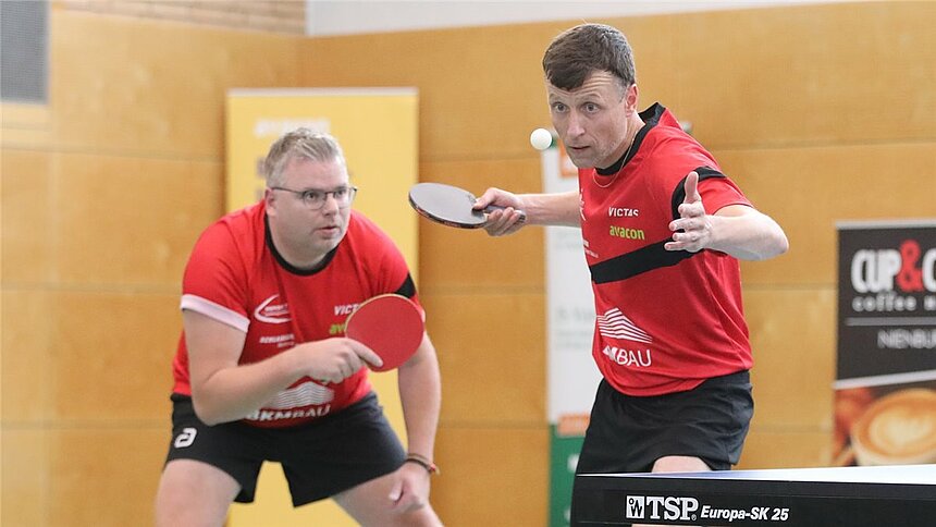 Markloher Oberliga-Tischtennis-Teams im Doppel-Einsatz