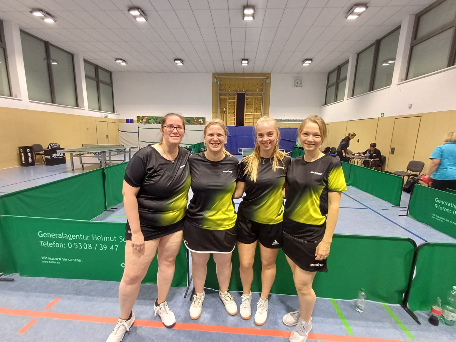 Unbeeindruckt von der 1:9-Abreibung in Weddel gelang den Hattorferinnen tags darauf ein 7:3 Auswärtserfolg (25:18 Sätze) beim Tabellenvorletzten VfB Oldenburg (4:28). Die Grundlage zum Sieg wurde bereits in den Doppeln durch zwei 11:8 Fünfsatzerfolge von Kim Roland/Karin Roland sowie Jennifer Mulgrew/Nicole Bartkowski gelegt. In Galaform präsentierten sich Kim Roland sowie Nicole Bartkowski, die jeweils zwei Einzelsiege beisteuerten. Jenny Mulgrew siegte mit 3:1 Sätzen gegen Maike Westerburg, beklagte aber eine erneute 12:14 Fünfsatzniederlage gegen Nathalie Jokisch. Mannschaftsführerin Karin Roland glaubt nach diesem wichtigen doppelten Punktgewinn: „Damit dürfte unser Klassenerhalt mit sechs Punkten Vorsprung bereits in trockenen Tüchern sein. Wissingen wird in seinen letzten drei Partien nicht auch noch gegen Meister SV Emmerke siegen“.