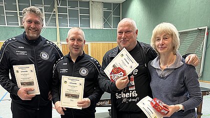 An letzten Wochenende hatte der Kreisverband zu einem Zweier-Mannschaftsturnier nach Bispingen eingeladen. 21 Teams gaben ihre Meldungen ab. In der Vorrunde wurde in Dreier-Gruppen nach dem Corbillon-Cup-System gespielt. Zur Chancengleichheit wurde das Punktvorgabesystem analog des Kreispokals angewendet. Durch Siege in den Viertelfinals qualifizierten sich Manfred Furch/Pavel Machulin (Eintracht Munster 2020) gegen Dennis Vedder/Maurice Adam (SG Bomlitz-Lönsheide), Kathrin Körner/Reiner Lepke (MTV Oldendorf) gegen Irina und Gregor Kasprick (TTSG Leinetal), Torsten Schäfer/Thomas Schulz (Sportfreunde Bispingen) gegen Jamie Böker/Michel Schiel (Eintracht Munster 2020) und Ralf Hennig/Laurent von Fintel (TV Jahn Schneverdingen) gegen Regina Kranich/Wolfgang Mohr (MTV Soltau) für das Halbfinale. In den Halbfinals setzten sich das Oldendorfer Doppel Körner/Lepke gegen die Munsteraner Furch/Machulin und Ralf Hennig/Laurent von Fintel gegen Böker/Schiel durch. Das vereinsinterne Spiel um den dritten Platz blieben Manfred Furch/Pavel Machulin gegen Jamie Böker/Michel Schiel siegreich. Das Oldendorfer Team Körner/Lepke gewannen das Finale gegen Ralf Hennig/Laurent von Fintel und drehten dabei einen 1:2 Rückstand zu einem 3:2 Sieg um. Sieger der Trostrunde Monika Pralle/Ralf Förster (TTSG Leinetal) gegen Sven Siedow/Christian Stickroth (Eintracht Munster 2020).