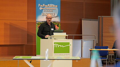 Im Toto-Lotto-Saal der Akademie des Sports in Hannover eröffnete TTVN-Präsident Heinz Böhne am vergangenen Sonntag die Sitzung und begrüßte die 38 Delegierten. Anschließend berichtete Geschäftsführer Markus Söhngen über aktuelle Informationen aus dem Verband. Im Fokus stand dabei die bevorstehende PingPongParkinson World Championship 2026, die vom 26. bis 30. September 2026 in Hannover ausgetragen wird.