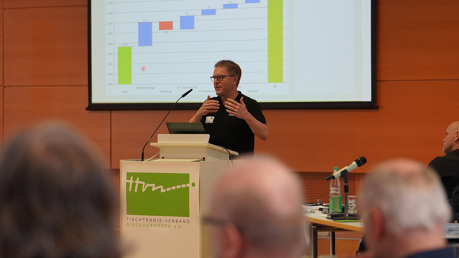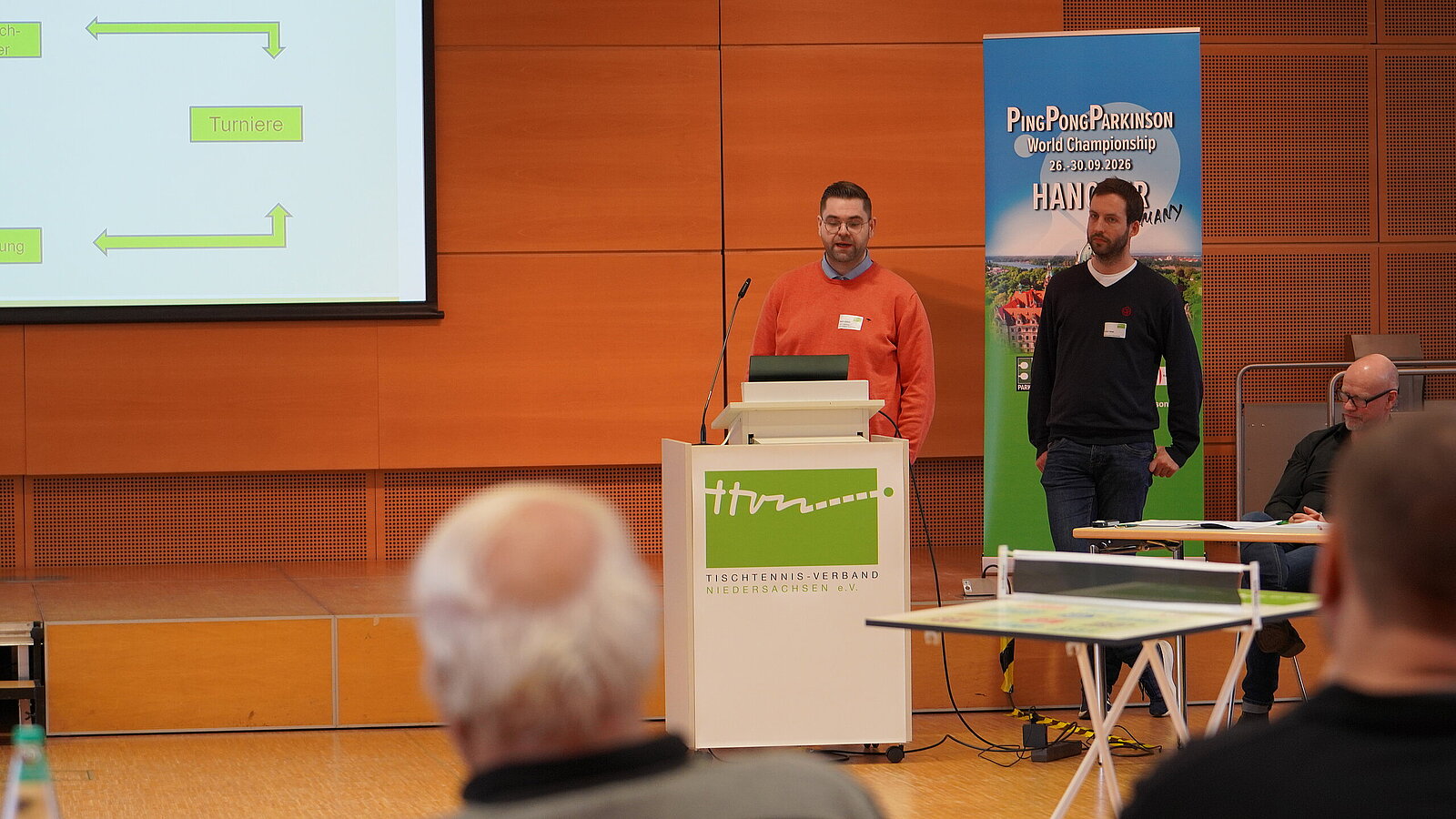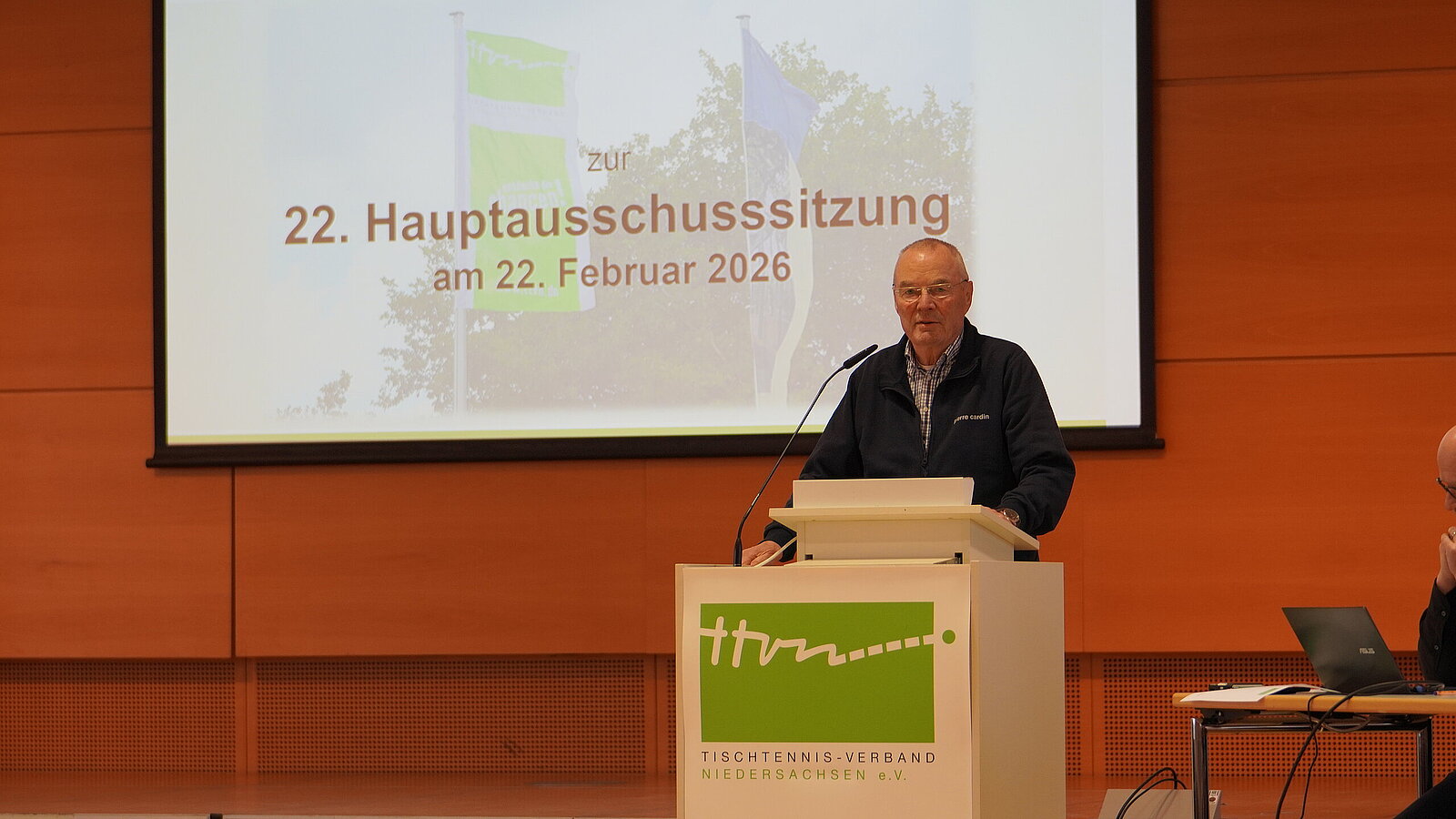 Im Toto-Lotto-Saal der Akademie des Sports in Hannover eröffnete TTVN-Präsident Heinz Böhne am vergangenen Sonntag die Sitzung und begrüßte die 38 Delegierten. Anschließend berichtete Geschäftsführer Markus Söhngen über aktuelle Informationen aus dem Verband. Im Fokus stand dabei die bevorstehende PingPongParkinson World Championship 2026, die vom 26. bis 30. September 2026 in Hannover ausgetragen wird.