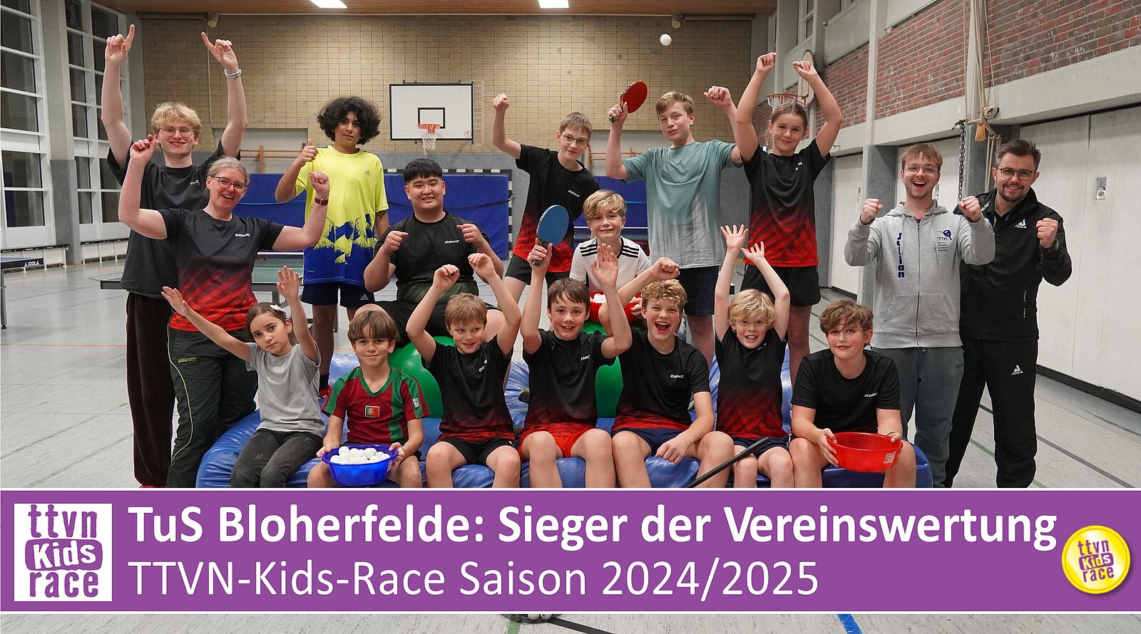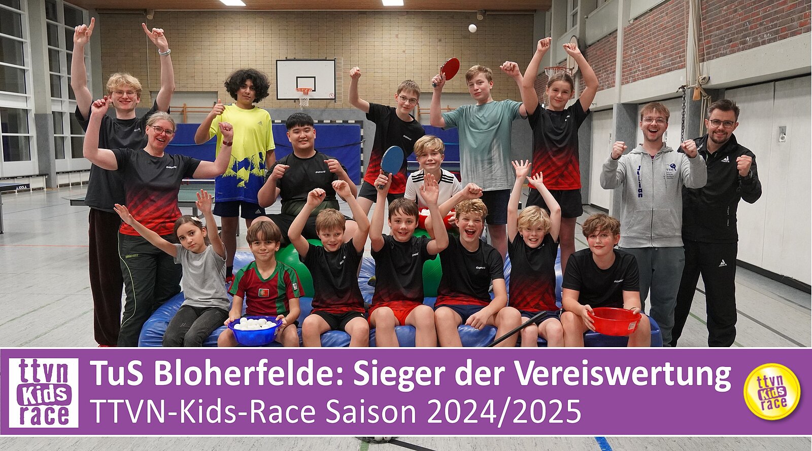 Der TuS Bloherfelde (Oldenburg-Stadt) war auch in der Saison 2024/25 erneut der aktivste Verein bei der TTVN Kids Race Turnierserie und nahm mit seinem Nachwuchs an insgesamt 21 Turnieren teil. Als Belohnung gab es wieder eine gemeinsame Trainingseinheit mit Landestrainer Marian Jobmann.