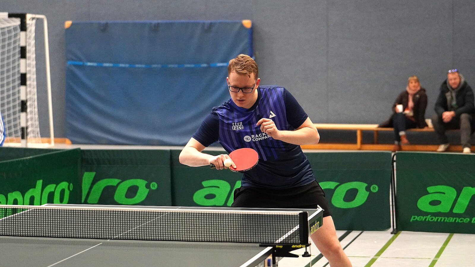 Eine Runde später war wieder vieles offen: David Gröger (TSV Dorfmark) übernahm die Spitzenposition vor Justin Wegener. Auf Rang drei lag nun der Meppener Finn Gumprich. Alle erzielten bis dahin eine 4:1-Spielbilanz. Dahinter folgten gleich sechs Akteure mit jeweils 3:2-Partien. Damit blieb auch die Suche nach den Qualifikanten für das Bundesfinale weiter spannend. Nach einem intensiven Offensiv-Duell in der Runde sechs behauptete sich Justin Wegener mit einem Vier-Satz-Sieg über David Gröger. Damit übernahm der Spieler der SG Bomlitz-Lönsheide die Führung und verteidigte sie bis zum Turnierende vor Finn Gumprich. Die Buchholzzahl, die die Siege seiner jeweiligen Kontrahenten beinhaltete, bezifferte sich auf 31. Damit war sie fünf Punkte besser, als die des Meppeners und krönt Justin Wegener zum TTVN-Race-Finalsieger 2025.