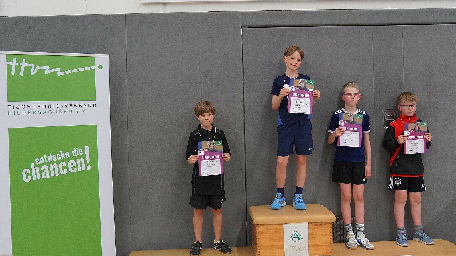 Durch die zeitversetzte Austragung (erst die Mädchenkonkurrenz und anschließend die Jungenkonkurrenz) wurde den mitgereisten Fans der Kinder über den ganzen Tag verteilt spannende Spiele geboten. Bei den Mädchen 0-8 Jahre erspielte sich Lene Kwiatkowski (Bezirk Lüneburg) den ersten Platz. In der älteren Altersklasse (9-10 Jahre) gewann Xenia Roth (Bezirk Lüneburg). Bei den Jungen 0-8 sicherte sich Tony Choi (Bezirk Braunschweig) den Sieg in seiner Altersklasse. Sieger der Jungen 9-10 Jahre wurde Vinz Peters (Bezirk Weser-Ems). „Es war eine tolle Atmosphäre, da die Eltern und Gäste durch den u-förmigen Tischaufbau mitten im Geschehen waren“, berichtet Udo Sialino, TTVN-Referent Vereinsservice und Verantwortlicher der mini-Meisterschaften.
