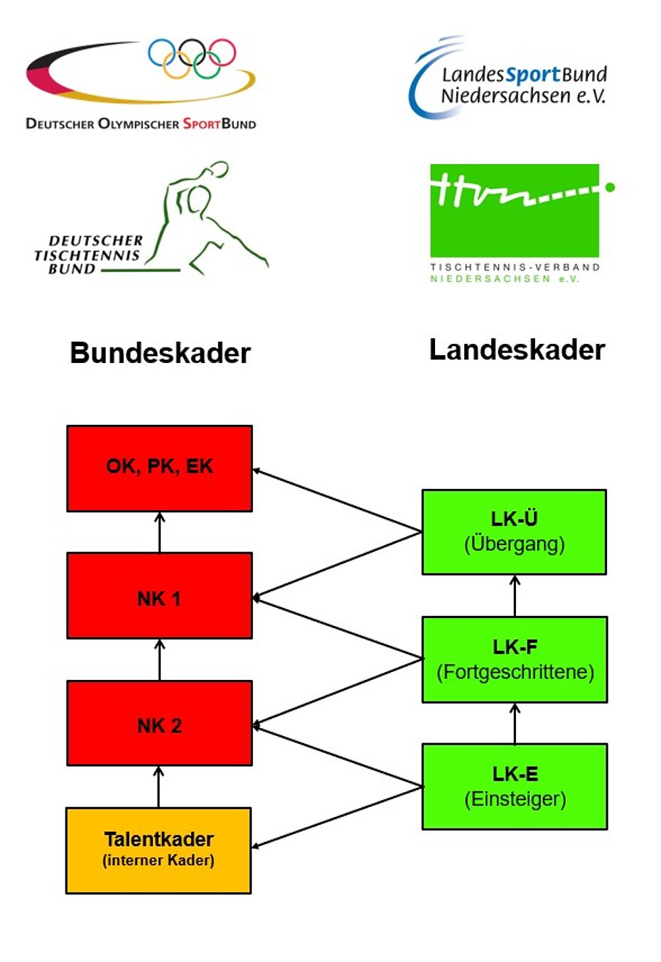 Parallel zu den Landeskadern bestehen die vier Bundeskader (OK, PK, NK1, NK2 - siehe auch Schaubild).