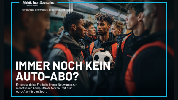 Befrei dich jetzt mit dem Auto-Abo unseres Partners Athletic Sport Sponsoring! Du fährst jedes Jahr ein neues Auto zu einer festen monatlichen Komplettrate, in der wirklich alles enthalten ist. Nur tanken musst du noch selbst – alles andere regelt unser Partner!
