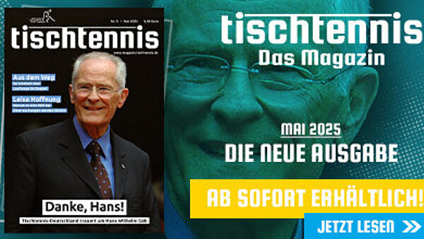 Er war Visionär, Ratgeber und moralische Instanz im deutschen Sport, vor allem aber in seinem Sport Tischtennis. Kurz vor Ostern ist Hans Wilhelm Gäb im Alter von 89 Jahren gestorben. Die Tischtennis-Familie nicht nur in Deutschland, sondern auf der ganzen Welt hat eine Ausnahme-Erscheinung verloren. Friedhard Teuffel blickt in der aktuellen Ausgabe von tischtennis auf das eindrucksvolle Leben und Wirken Gäbs zurück. Darüber hinaus berichtet tischtennis auch in diesem Monat über interessante Themen aus dem nationalen und internationalen Spitzensport, etwa die anstehenden Weltmeisterschaften in Katar (Doha). Außerdem gibt es in der Mai-Ausgabe wieder hilfreiche Material- und Trainingstipps und Berichte aus dem Amateursport.