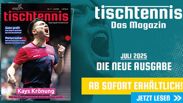 Der Juni war der Monat der Deutschen Meister. Erst fanden in Erfurt zum zweiten Mal die TT-Finals statt. Bei der Multi-DM kürten sich nicht nur Annett Kaufmann und Kay Stumper – sondern neben ihnen auch zahlreiche andere Spielerinnen und Spieler in den Jugend-, Leistungs- und Seniorenklassen. Nur eine Woche später ging es in Frankfurt weiter, wo sich die TTF Ochsenhausen mit den scheidenden Hugo Calderano und Simon Gauzy zum Deutschen Mannschaftsmeister krönten – und Timo Boll bei seinem Abschied einen letzten Titel verwehrten. Wieder eine Woche später trafen die besten Minis des Landes beim Bundesfinale in Oberboihingen aufeinander. Sarah Alves und Carlos Thomas heißen die Sieger. Beim letzten Endspiel um eine Deutsche Meisterschaft wurde es hitzig – im wahrsten Wortsinn. Der TTC Weinheim gewann das Endspiel in der Damen-Bundesliga gegen den TTC Berlin Eastside. Doch die Hauptstädterinnen legten Protest ein aufgrund der Temperaturen in der Weinheimer Halle. tischtennis berichtet ausgiebig von allen Entscheidungen. Außerdem gibt es in der Juli-Ausgabe wieder hilfreiche Material- und Trainingstipps und Berichte aus dem Amateursport.
